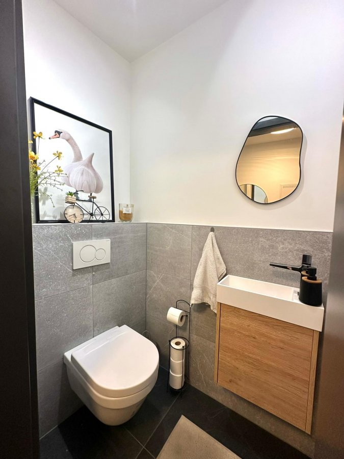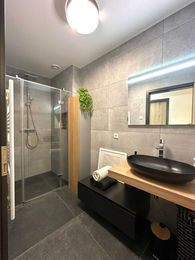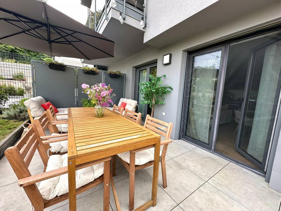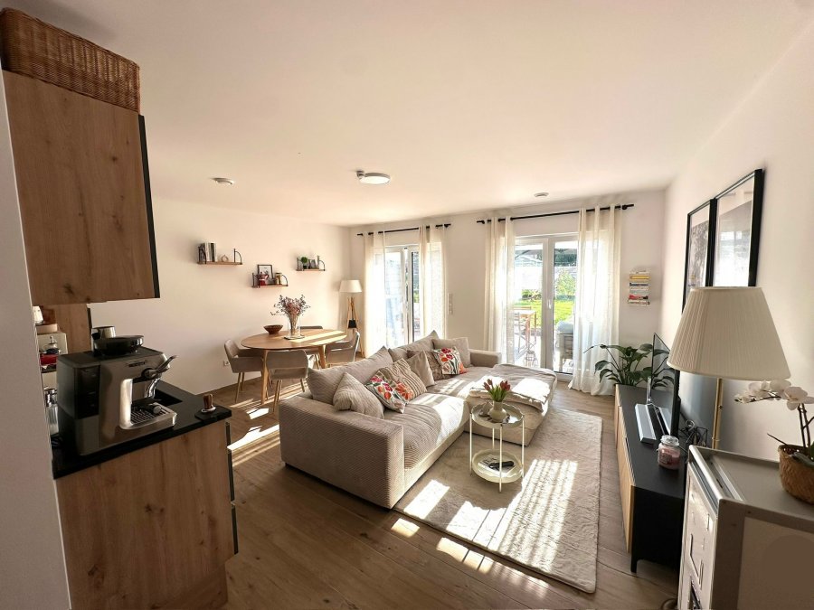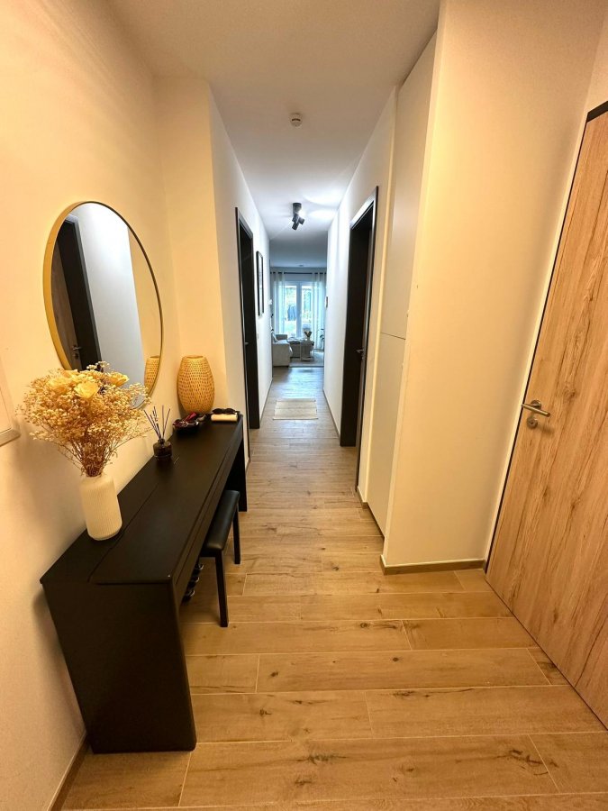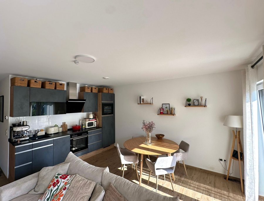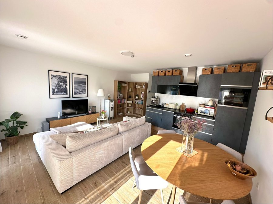 On vous propose en exclusivité ce bel appartement moderne de 53 m² situé au rez-de-chaussée d'une résidence récente (2019) à Niederkorn.L'appartement se compose d'un hall d'entrée desservant une chambre à coucher lumineuse, une salle de bain moderne avec toilettes séparées, ainsi qu'une cuisine équipée ouverte (incluant un frigo à vin) donnant sur le séjour.
