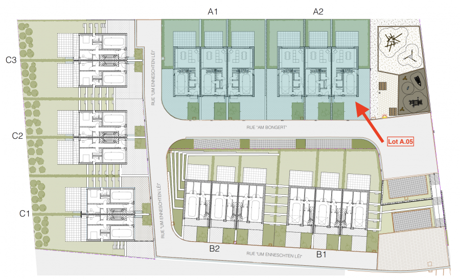 Ce nouveau lotissement est idéalement situé à quelques pas du lycée de Junglinster et du quartier résidentiel JONGMETT, qui offre plusieurs commodités : boulangerie, restaurants, etc.